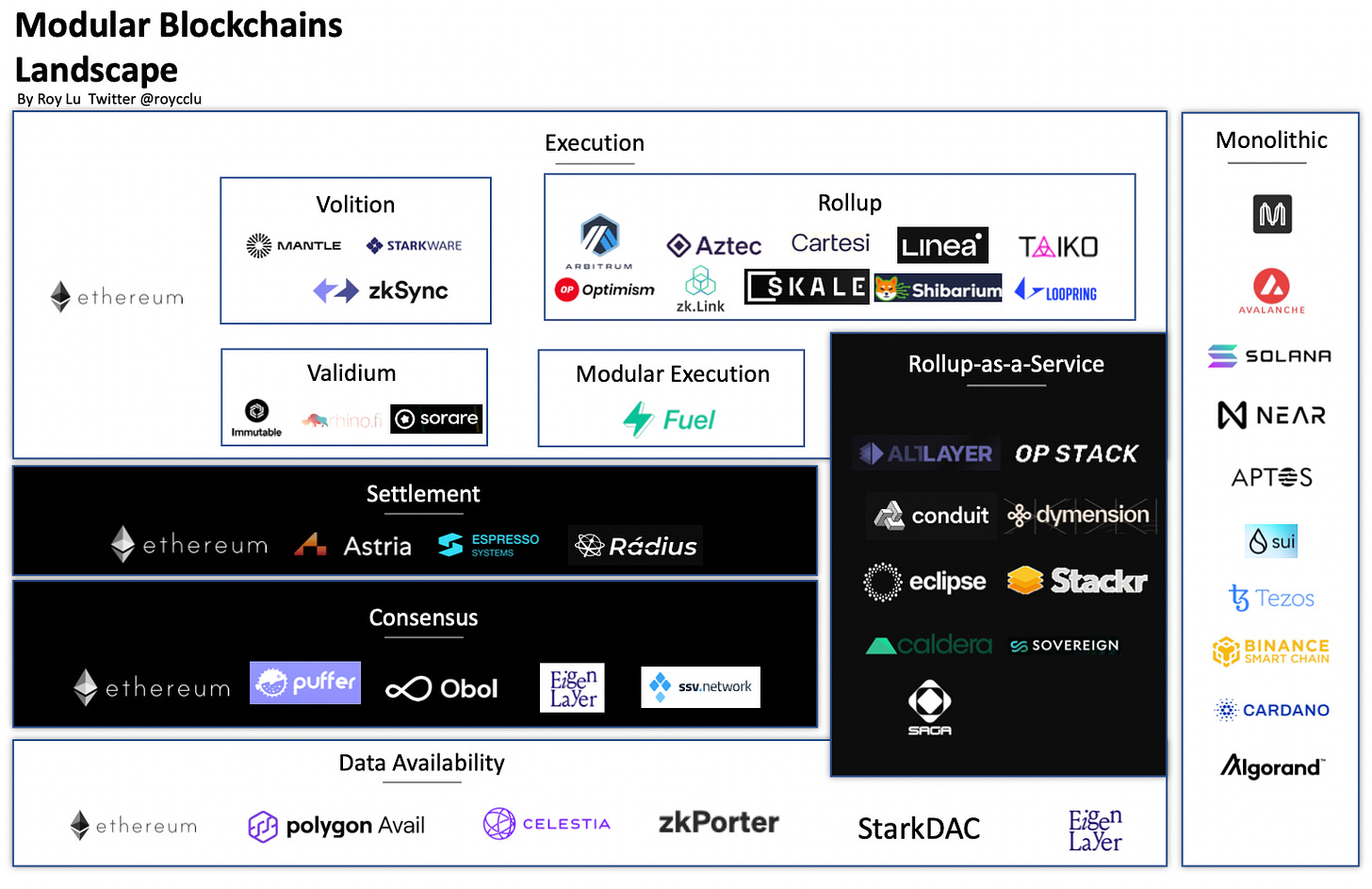 The modular blockchain space has flourished, along the layers of Execution, Settlement, Consensus, and Data Availability, while opening doors to novel categories such as Rollup-as-a-Service and volitions.
